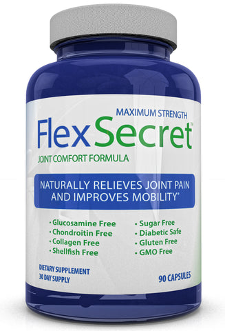 POWERFUL JOINT PAIN RELIEF - FLEXSECRET"S formula is designed for anyone who has joint pain, joint stress or experiences joint stiffness. The powerful nutrients may help to maintain joint flexibility. FLEXSECRET works for Men, Women and Seniors. GET YOUR LIFE...